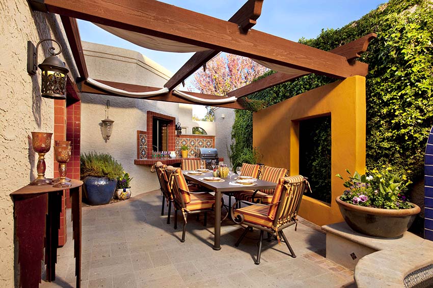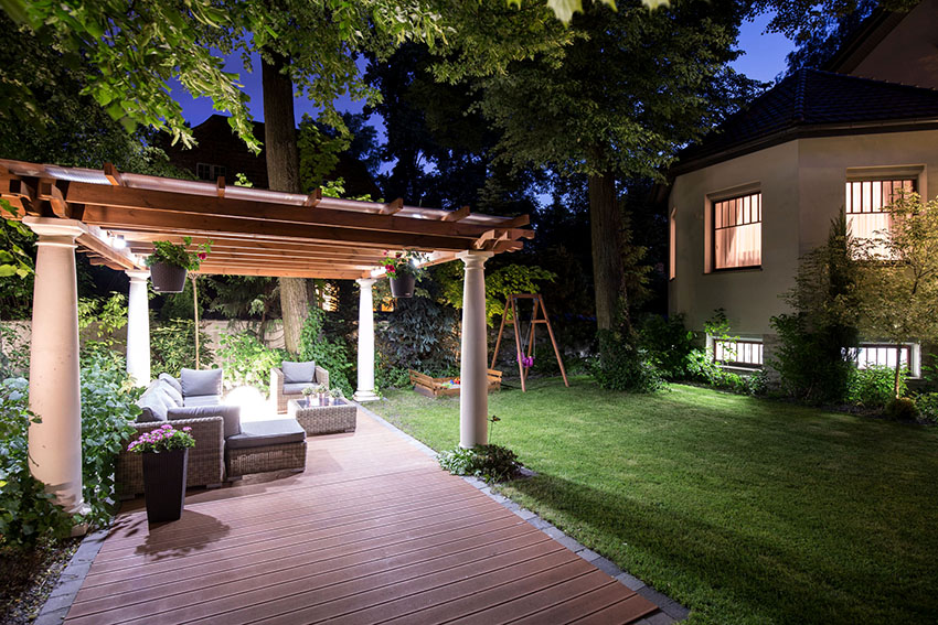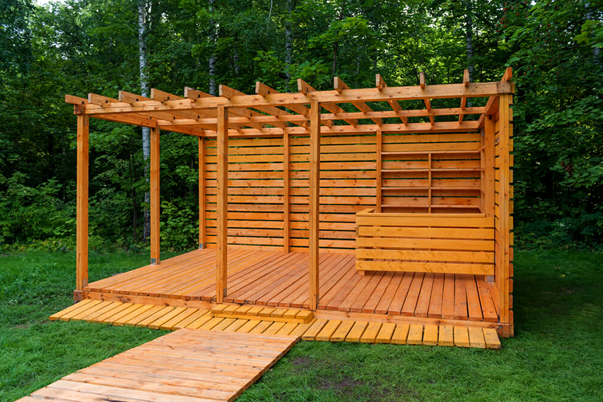 When calculating the size of the pergola, you need to take into account the proportions of the house and landscape space
