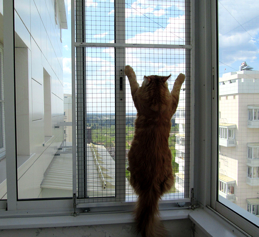 Therefore, the owners of pets, in an effort to protect their four-legged friend from falling out of the window, install an "anti-cat" lattice in the opening. A standard mosquito product is not suitable for these purposes, since it is lightweight, weak fastening. Such a design on the window is not able to withstand the weight of the animal, and the sharp claws of the pet are capable of tearing the canvas in a matter of minutes.