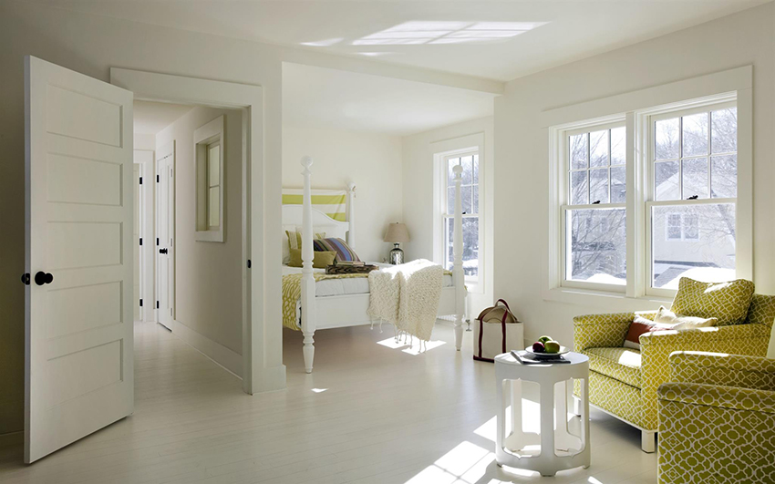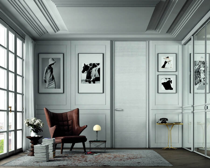 How to combine shades correctly: a photo of white doors in interiors of different colors