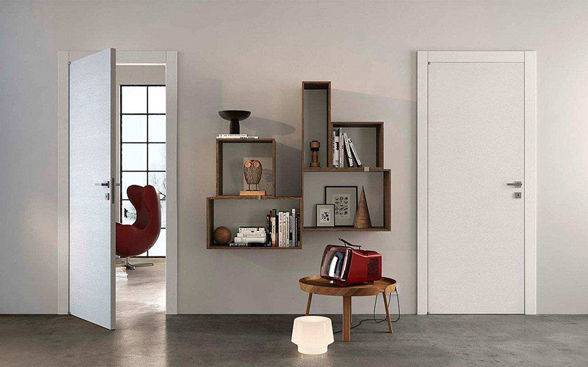 Designers often use a fusion effect based on a combination of "white walls / white doors". As a result, on walls with a light surface, interior openings are simply not visible. Thanks to this, the room looks very spacious, almost limitless. To enhance this effect, you can use mirrors with or without white frames.