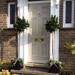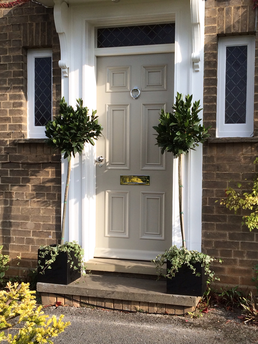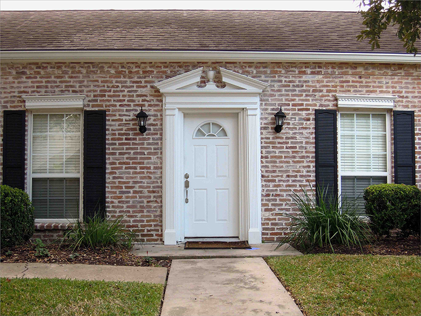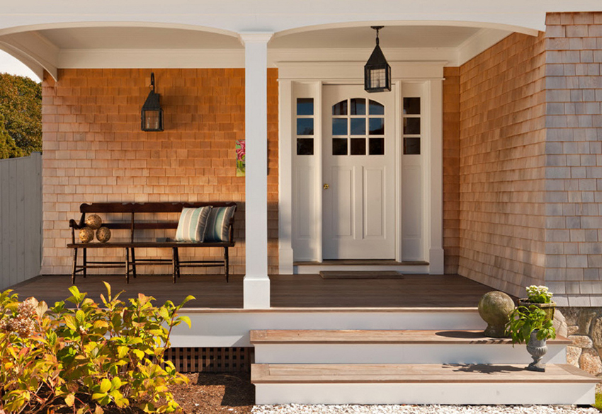 To diversify the appearance of the entrance doors, you can use various elements: