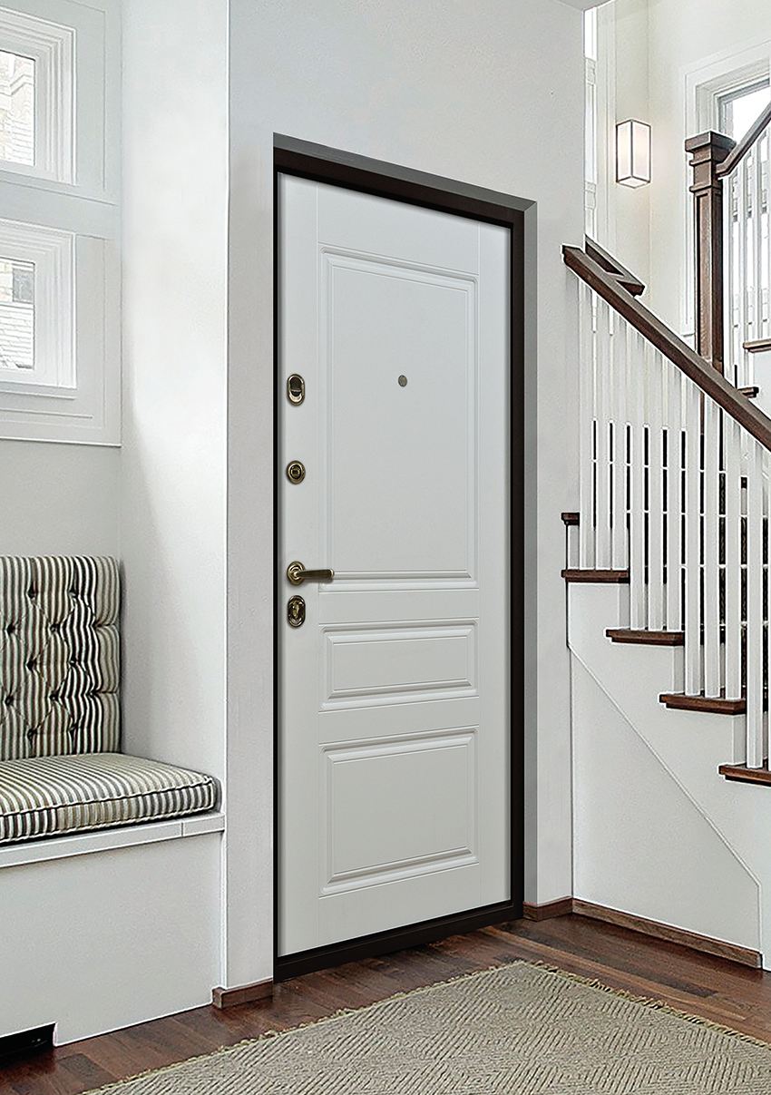 The white doors found in the magazines in the photo in the interior of the apartment are not only interroom doors. This color is also relevant for entrance structures. The properties of the white tint will be useful to homeowners in regions with a hot climate. The constant exposure to sunlight causes heating of surfaces. However, white doors are less prone to this.