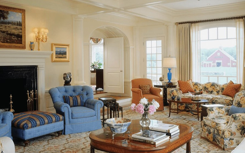 - repeat the fittings or textures on the furniture upholstery in the living room;