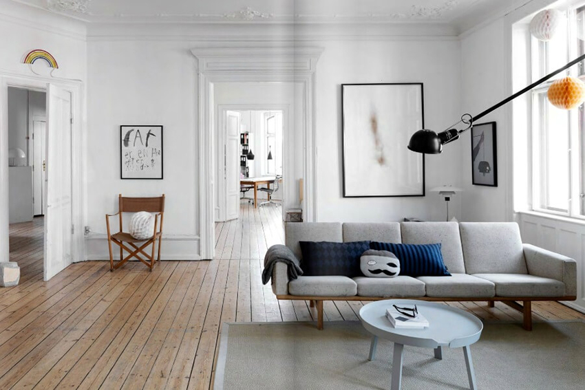 The use of classic white doors is also typical for the Scandinavian style. These interiors are based on light colors and bright lighting. Given this situation, we can say that the presence of white canvases is not just desirable, but necessary. Such a solution is ideal for those cases when it is necessary to achieve a visual expansion of the space.