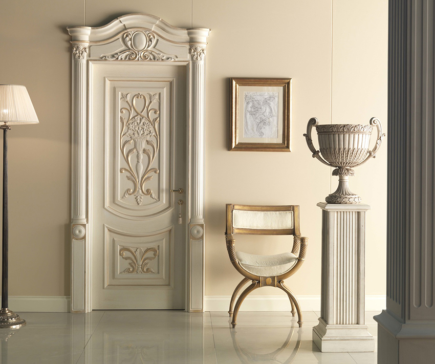 The baroque and empire styles can be classified as classical styles. They look somewhat pretentious, but provided that a special finish and appropriate decor are used, the light door will not look superfluous.