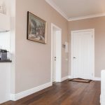 Helpful advice! If light skirting boards are used for accents on white doors, then it is better to take carpet as a floor covering. A wood grain finish is also suitable. In such a combination, all interior elements will look harmonious.
