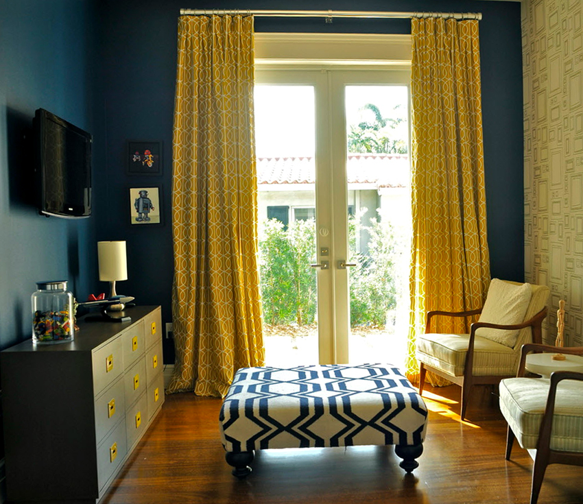 Curtains made in warm colors help to fill the room with coziness. It is recommended to use warm shades on curtains in a room with north-facing windows, or in a room that is heavily shaded by neighboring buildings. In the room located on the south side of the house, on the contrary, it is required to slightly dim the brightness and hang thick curtains of cold colors.