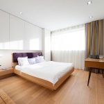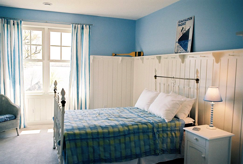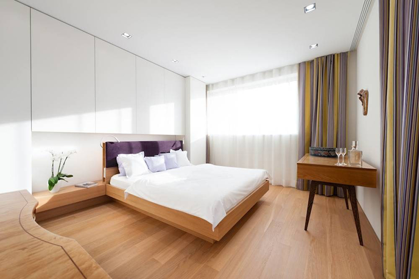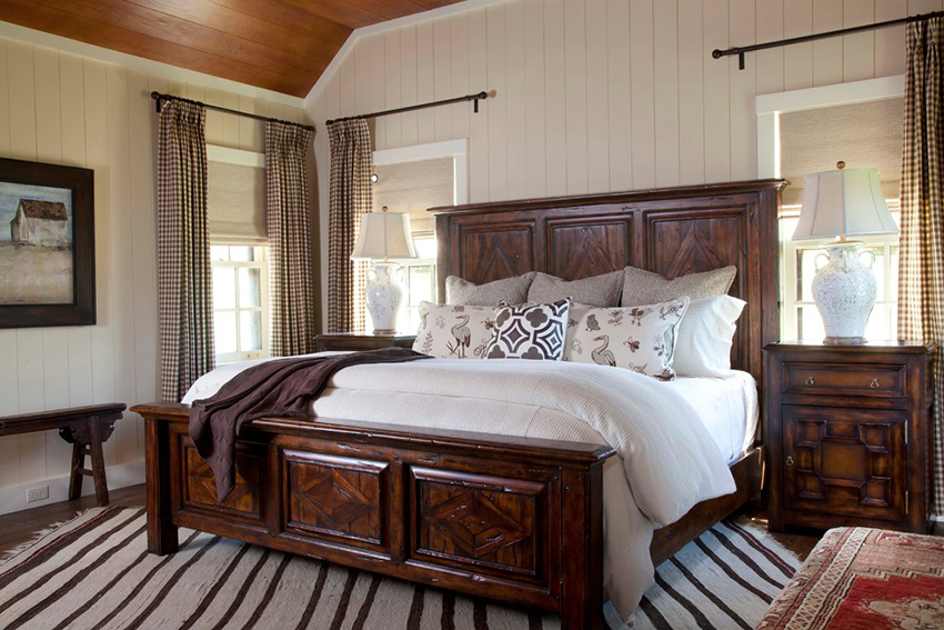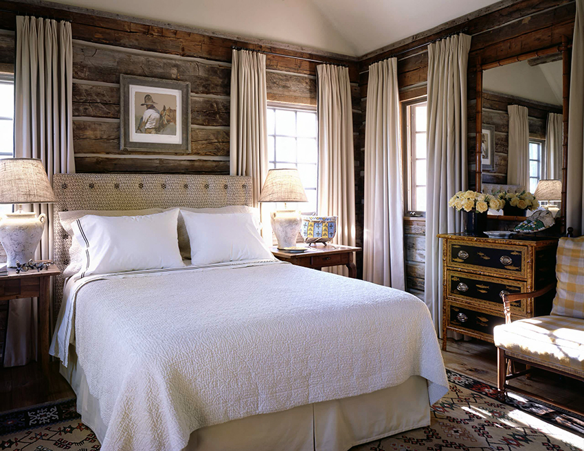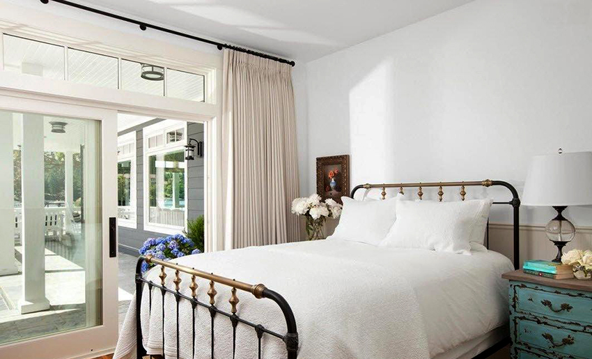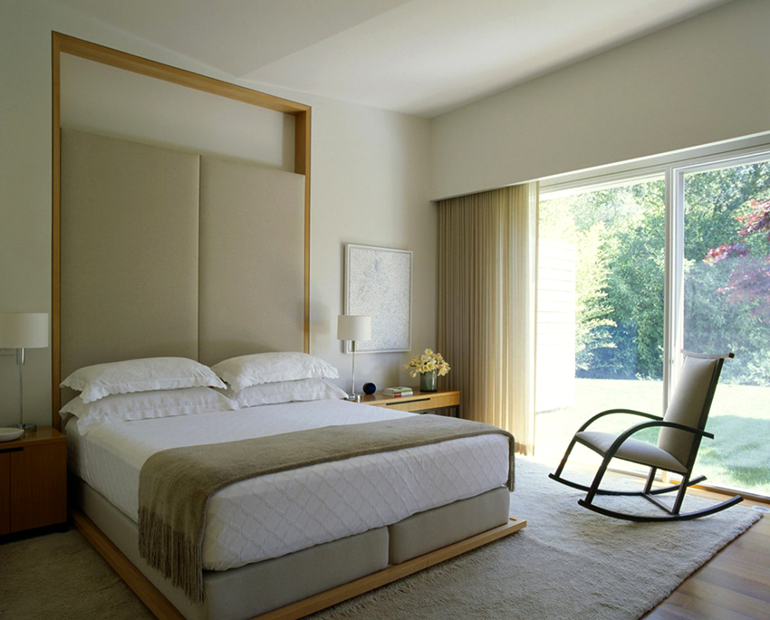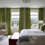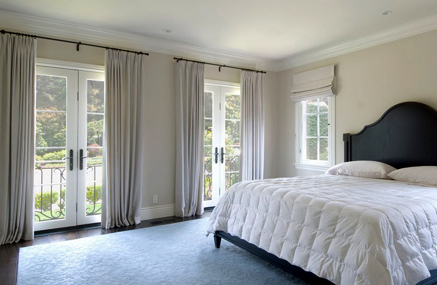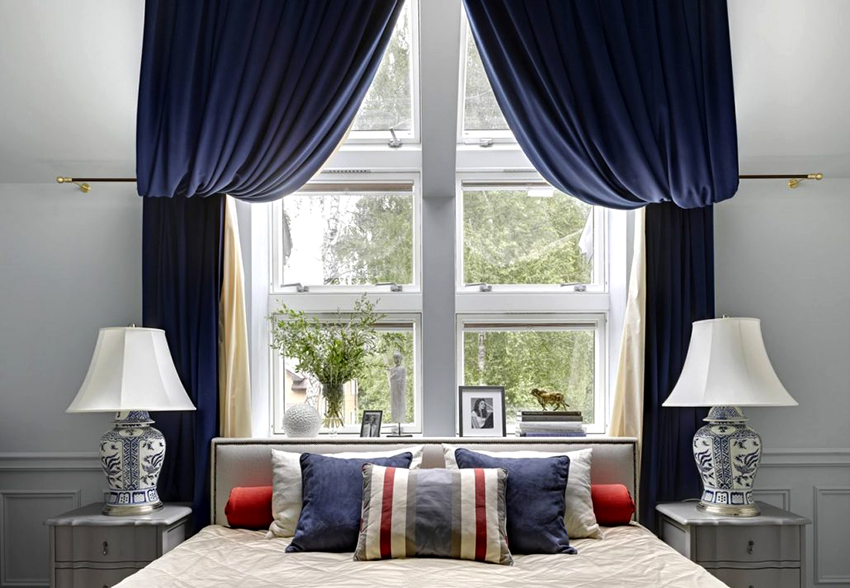 An important point is the selection of material for curtains in the bedroom. Here it is better to give preference to natural or, in extreme cases, combined fabrics that drape well and retain their shape. If blackout curtains were chosen, they are recommended to be combined with light tulle, which in the daytime can darken the room a little. Less and less often in the bedroom you can find the classics of curtains decorated with a lambrequin or voluminous frills. Such options are usually only used in large houses where the bedroom is made in classic styles such as baroque, modern or empire style.