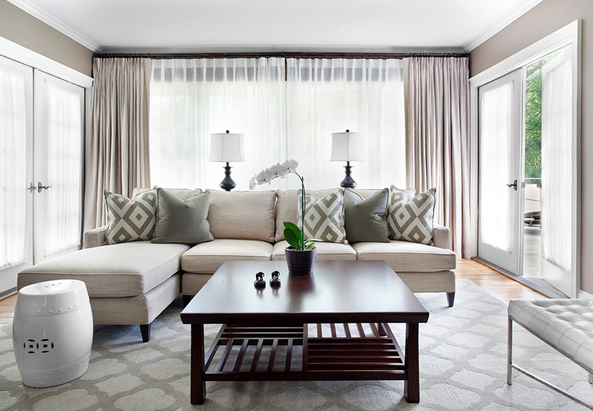 How to choose the size and shape of products to create a harmonious interior in the room: photo of curtains