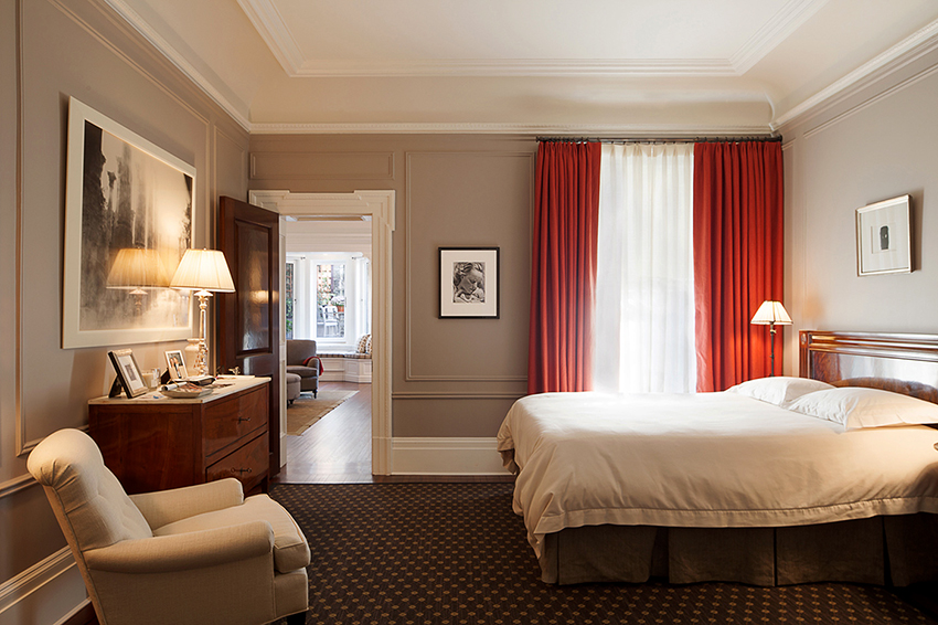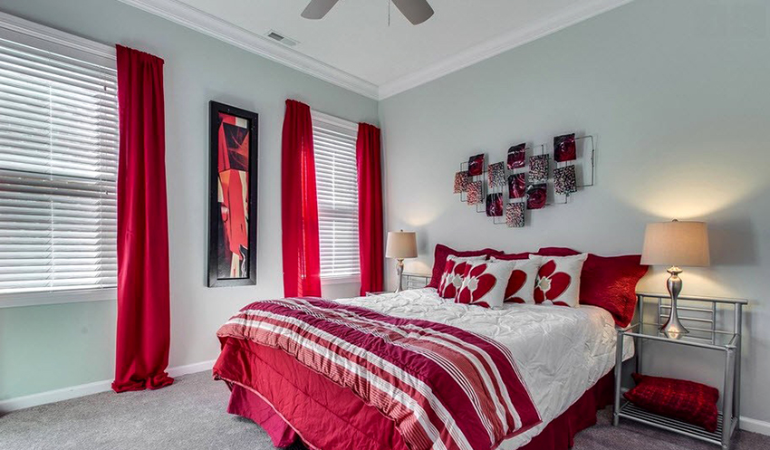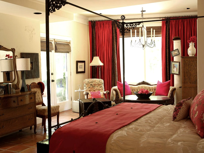 - Burgundy. Refers to calm shades of red. Voluminous burgundy curtains made of dense fabric will make the bedroom truly romantic.