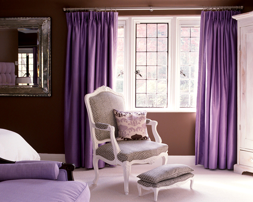 - Lavender. A gentle universal color that is appropriate for creating curtain designs in a room of any style.