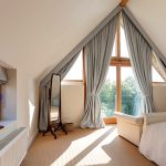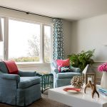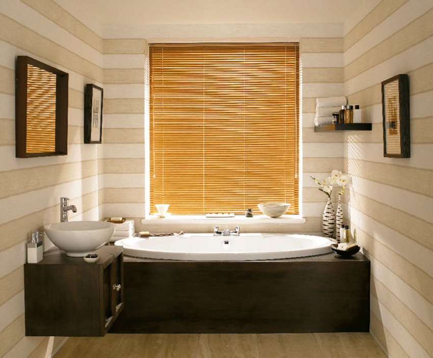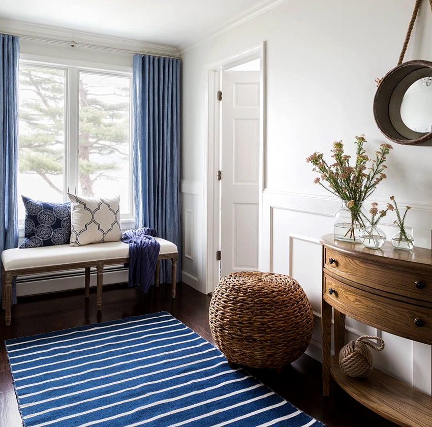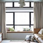 - A narrow window can be adjusted with a horizontal striped print curtain.