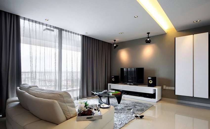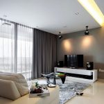 When choosing curtains for the hall, first of all you need to decide what main function they will perform. It is necessary to pay special attention to the correct calculation of the width, length, to determine the number of tiers or layers. If you want to maximize the height of the walls, you should use a hidden or ceiling cornice, which will allow you to maximize the curtains to the ceiling.