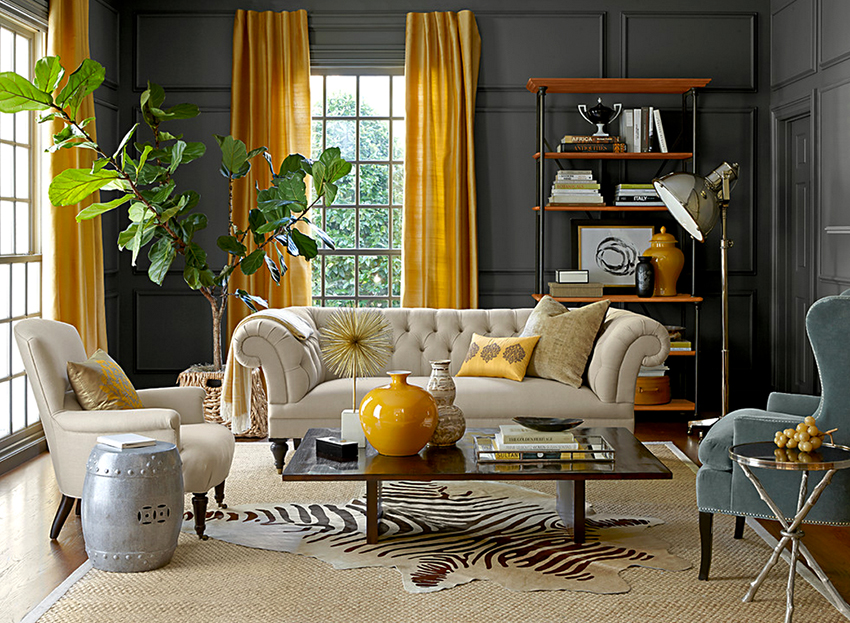 - The black. Curtains in this color can be used in rooms that are abundantly saturated with sunlight and have good artificial lighting. Black is ideal for decorating a home theater room.