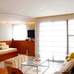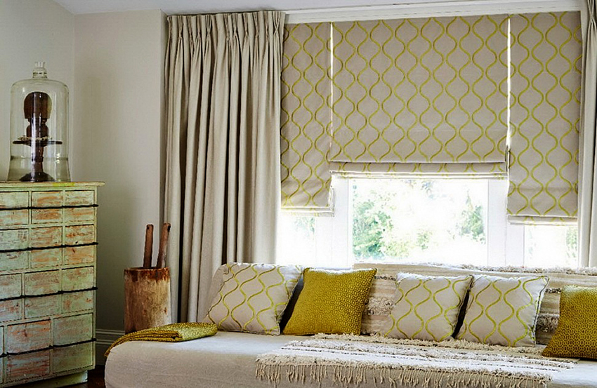 - For high ceilings, when you want to divert attention from the ceiling, curtains with voluminous abstract images are chosen.