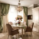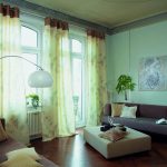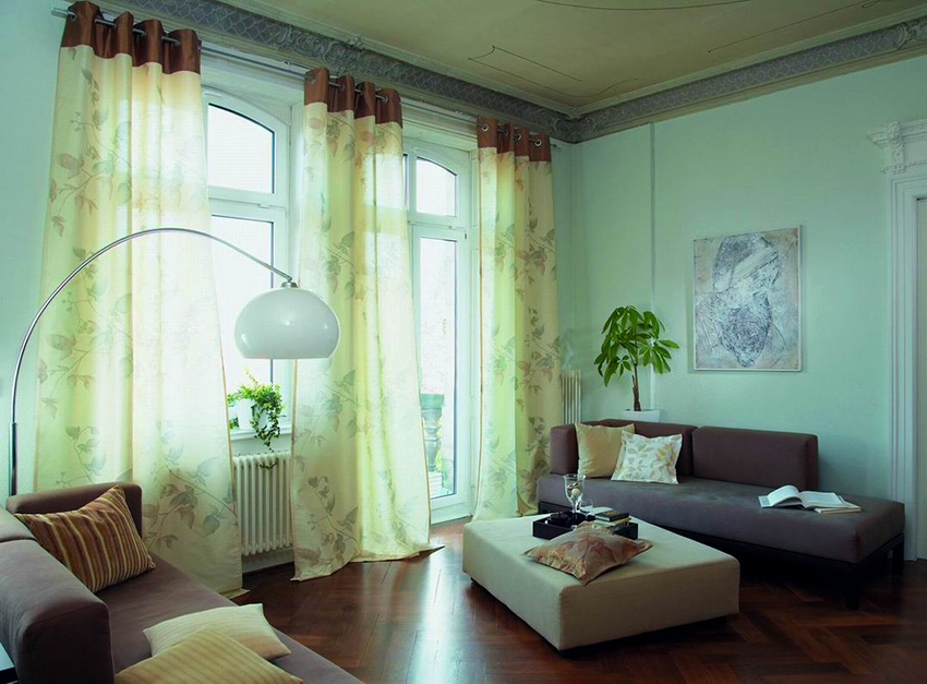 If you look at the photo of curtains for curtains, you can pay attention that, having chosen the right products, it is easy to visually give the room a different shape, hide the flaws and emphasize the advantages. For example, if the room has low ceilings, preference should be given to not too dense curtains of a cold shade, which have a vertical pattern on the canvas. The length must be in the floor. In this case, you should not load the curtains with lambrequins, fringes or cords. If you install curtains on a hidden cornice, the ceiling will appear even higher.