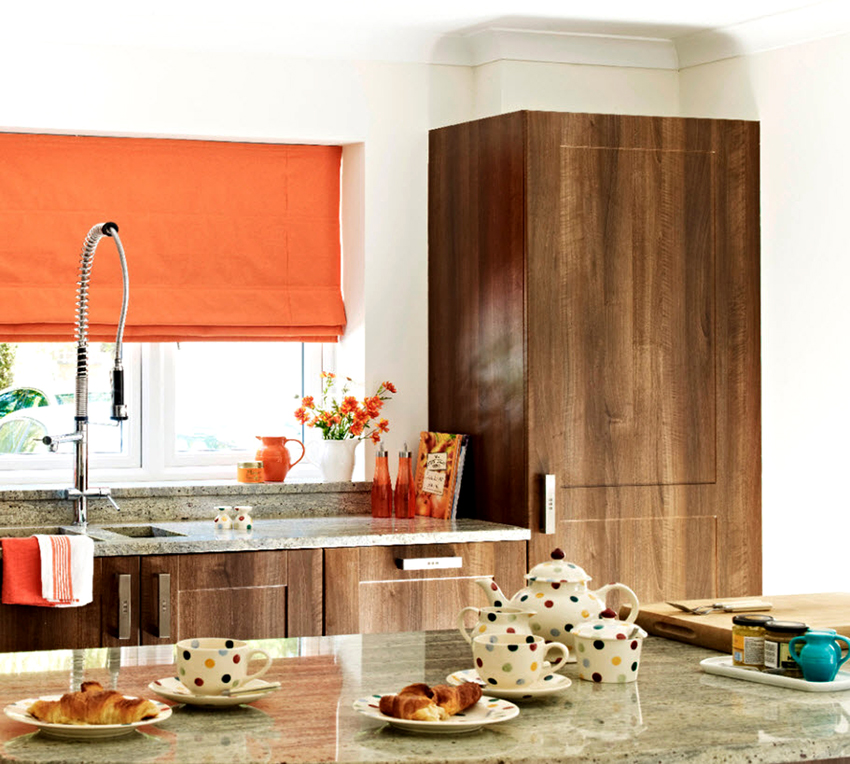 - Orange and green. Curtains in these colors will bring brightness to the room. If you use these colors when arranging a kitchen interior, then, according to psychologists, everyone who dines in such a kitchen will have a good appetite.