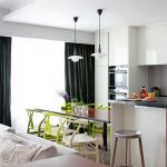 - The monochrome interior will be successfully complemented by black and white curtains with a checkerboard pattern or some kind of abstract print.This option will be a good addition to interiors made in modern minimalist styles.