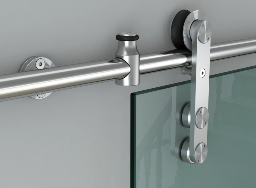 The sliding mechanism of the structure consists of guides. The door leaf moves along these runners. Closing and opening is carried out by rollers for glass sliding doors, which are located at the bottom of the structure. They fit snugly enough to the guides, providing quiet movement, which is achieved thanks to a special coating. Other factors, such as the quality of the bearings installed in the rollers, also affect the degree of noiselessness and the durability of the structure itself.