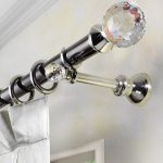 On both sides they are supplemented with curly tips - finials, which carry a decorative function. They can be made in the form of geometric elements, petals, flowers, animal heads. Modern options are often decorated with enamel and rhinestones, as shown in the photo of curtains.