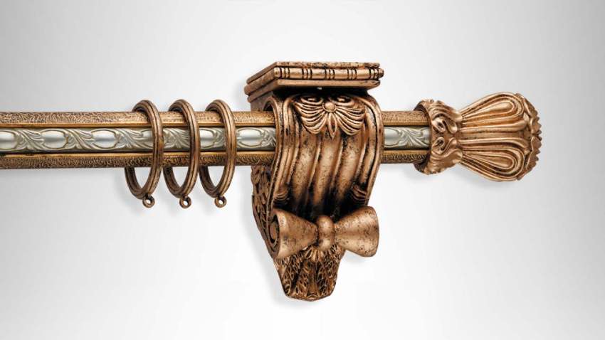 Depending on the type of product design, the curtain can be arranged in different ways. However, it includes the following main elements. At the ends of the cornice, finials can be installed, which are represented by curly tips. They are mainly used for round curtains.
