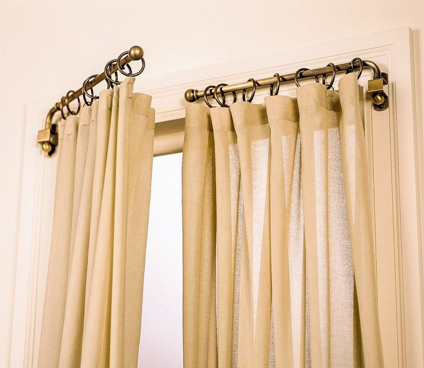 A rod, profile or string can act as a basis for hanging curtains. To fix the base of the curtain, special suspensions or brackets are used in the amount of two or more, which depends on the length of the curtain.Two elements are suspended on the sides of the product, and at least one is located in the middle and acts as a supporting link so that the curtain does not sag under the weight of the curtains. The length of the cornice can be at the level of the width of the window opening or cover the entire wall of the room.