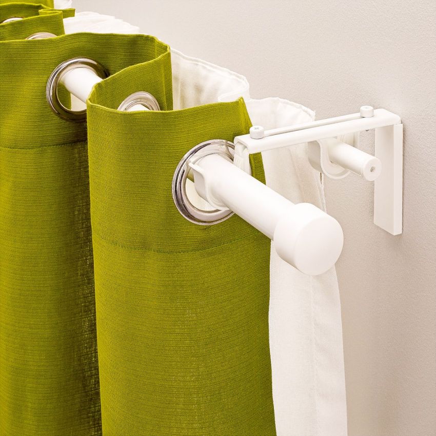 A type of tubular curtains is a telescopic structure that can be folded and unfolded based on the dimensions of the window opening and the width of the wall. This model can be used for different rooms.