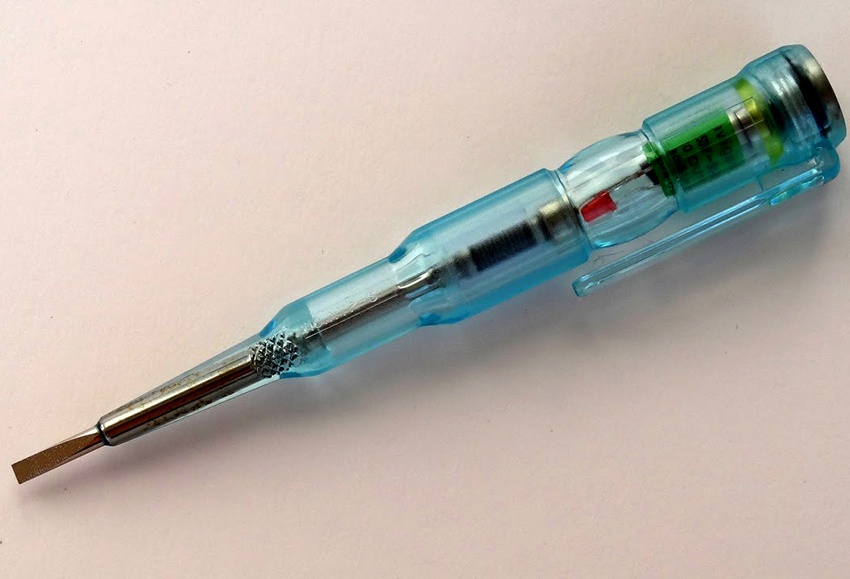 There are various modifications of the instrument: instruments differ in design and display option. Despite this, all indicator screwdrivers have the same operating principle. They show the presence of voltage in the network and the relative position of phase and zero. For this, a screwdriver metal probe is applied to the protected end of the electrical cable. If the light on the indicator lights up, this indicates the detection of a phase. The indication does not work on the zero contact.
