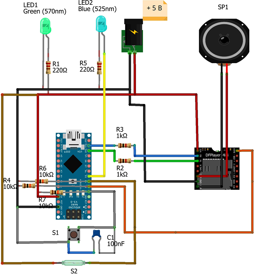 The resonator is represented by a coil that has a wire wound, as can be seen in the doorbell diagram.At the moment the voltage is applied to it, an electromagnetic alternating field arises. This causes the metal hammer to vibrate and strike the metal bowl. This action is accompanied by a characteristic sound.