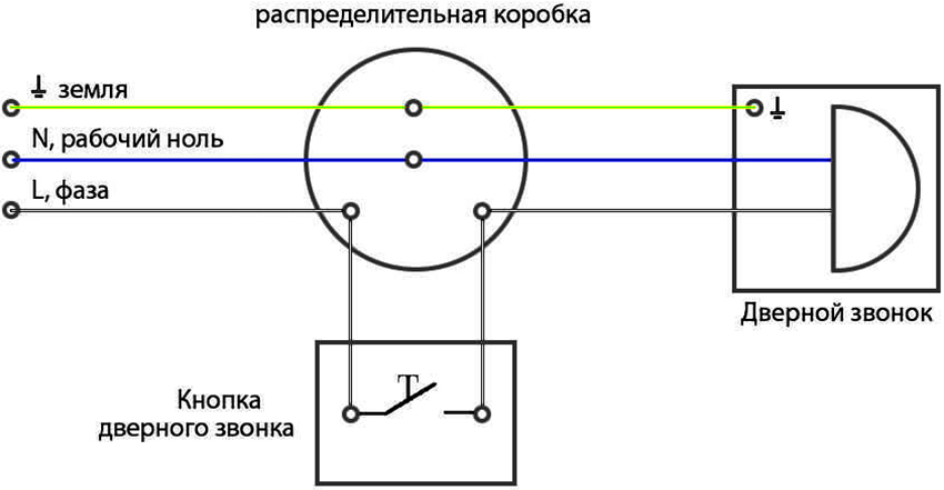 When connecting a wired bell to an apartment, it is most convenient to work with color-coded wires. The blue cable points to zero. A yellow or green wire identifies the protective earth loop, and red, black, white, or brown indicates a phase. If there is no color coding, the location of zero and phase is determined using an indicator screwdriver.