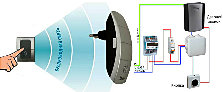 The scheme for connecting a wireless bell to an apartment is very simple. This is especially true for the version that plugs directly into the outlet. The button is mounted to the wall or on the jamb of the entrance door outside the room. Fastening can be done with self-tapping screws or dowels, depending on the nature of the base. The main unit is plugged into a socket, which should be located in the hallway as close as possible to the bell key.