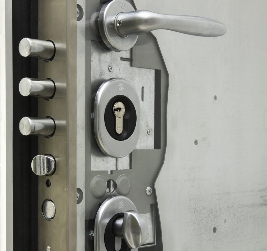 As mentioned earlier, there should be several locks. Also, please note that they work differently. Locking bolts should be large in diameter and go deep enough into the jamb. It is good if they are not visible, as this will complicate possible cutting with a cutting tool. The door should be provided with a crossbar mechanism that closes the door not only from the side, but from above and below.