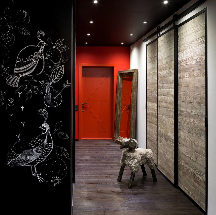 Doors of the same type and color for all rooms are the simplest solution, especially when they all face the same corridor and the apartment is made in the same style. Focusing on the color of the walls, the tone of the doors should either act as a contrast against their background, or correspond to the general tonal range.