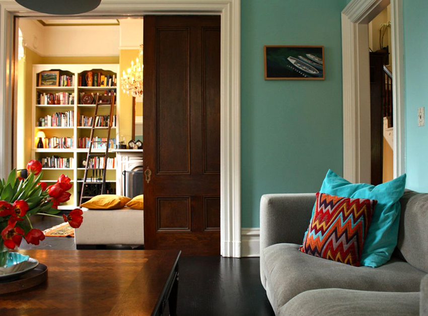 Installation of doors of different colors is appropriate when a residential building is divided into several corridors or rooms in an apartment with walk-throughs. It is allowed to install doors of various types in rooms for different purposes.