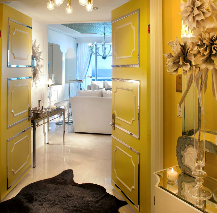 In modern interiors, doors in metallic colors are especially popular. At the same time, it should be noted that such models are not always in harmony with furniture and general design, so it is better to choose options to match the decor.