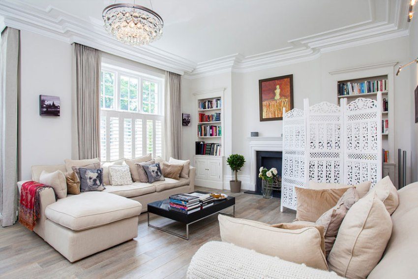 String double row ceiling cornice in the living room