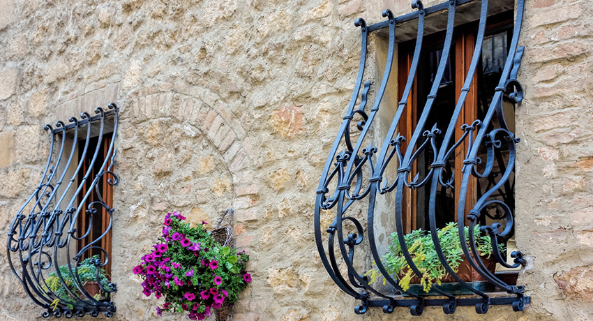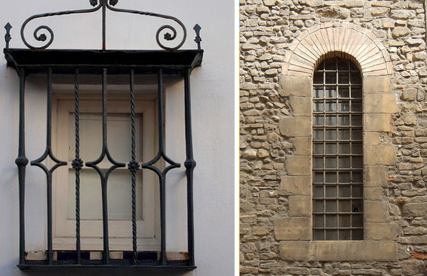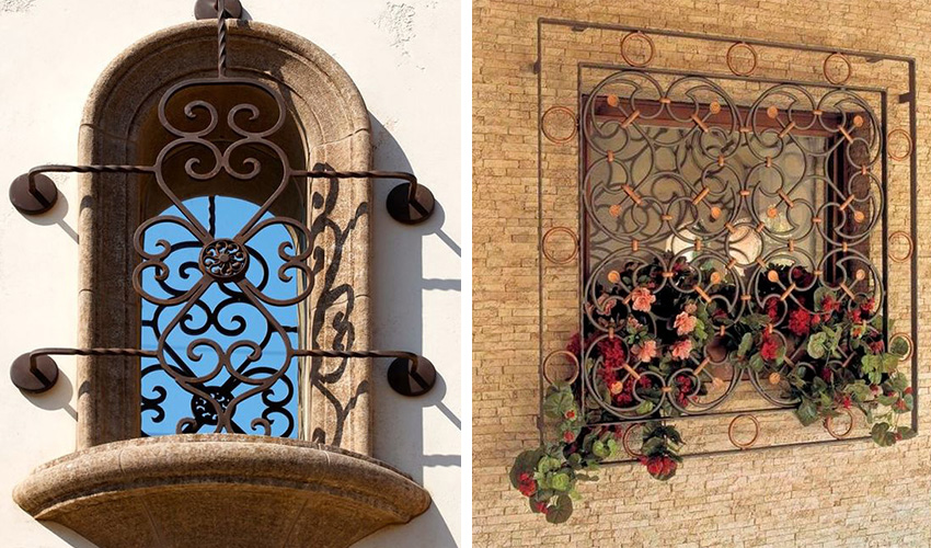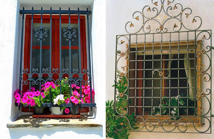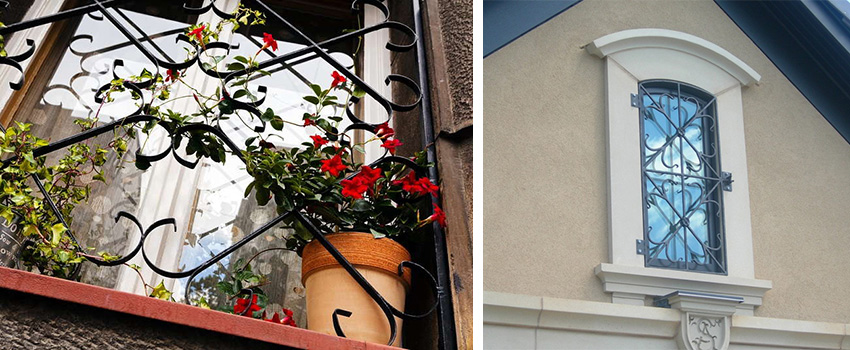 Professionally made and well-mounted forged gratings will favorably emphasize the individuality of the building and become a reliable protector against burglars. If you wish, you can make a grate on the windows with your own hands, but this will require you to purchase all the necessary materials and work hard.