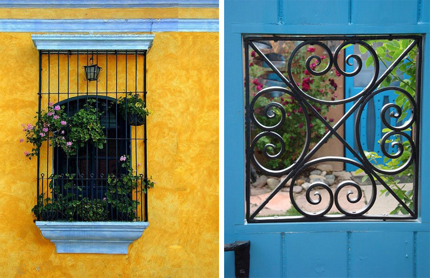 Dust and dirt are less visible on painted metal products, so they are more practical to use. Antique window grilles look original. Balcony structures are complemented by decorative glass, plastic, wooden details.