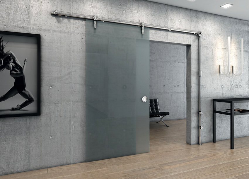 The main requirement when installing a sliding system for its normal functioning is that the wall along which the sash will move must be flat. This rule applies to a two-skid system. For a single-track design, in which the rail is attached to the ceiling, this condition is not necessary. The sliding system can be mounted to a wall or ceiling. The second option is advisable to use when organizing a partition using such a door.