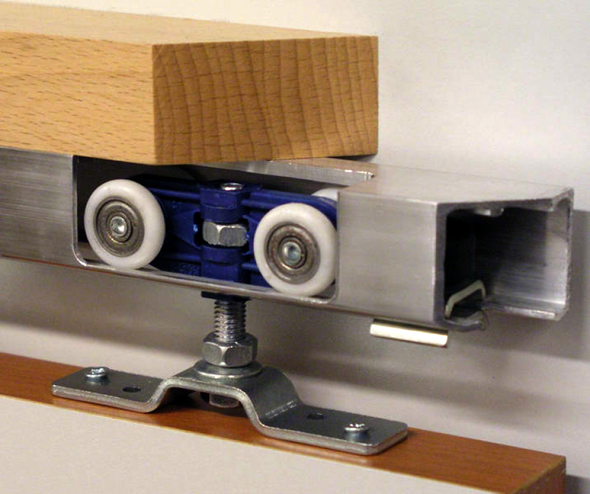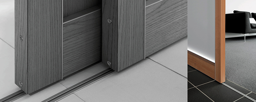 The two-track system assumes the presence of two guides: lower and upper. At the same time, the door leaf is moved using a roller mechanism for sliding doors, which is located on the lower rail. It can be single or double, which will provide free movement of two leaves. The rail is mounted to the floor. The bottom rail for the sliding door must be cleaned periodically for the system to function effectively and lastingly.