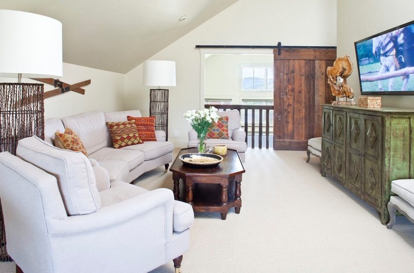 Many interior designers prefer the loft style. The loft style design is a combination of something old (fragments of brick walls, open wiring) and newfangled (modern technology, fashionable mirrors, metal panels). In this interior, massive sliding doors with an aging effect. To understand in more detail which door options are harmonious for the loft style, a photo will help.