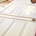 - A prepared leatherette is applied to the lubricated surface, pressed against the door with a dry roller with movements in one direction.