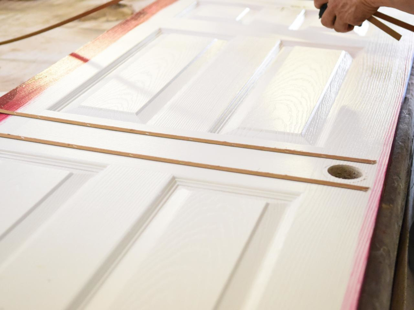 - The door is laid horizontally on a support, coated with glue with a paint roller.