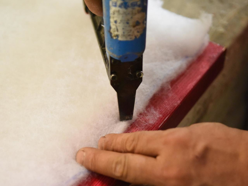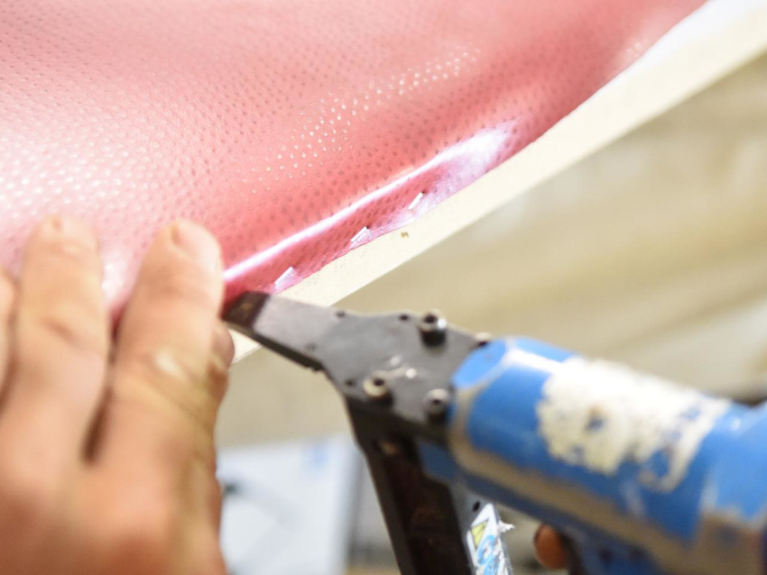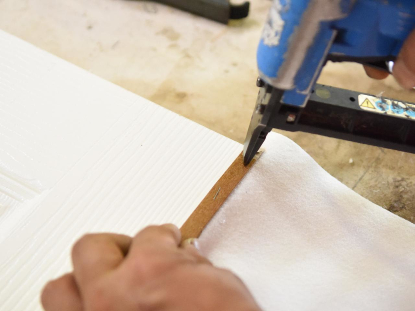 The upholstery of the hinged door should be started from the top and at the same time constantly monitor the tension level of the leaf.