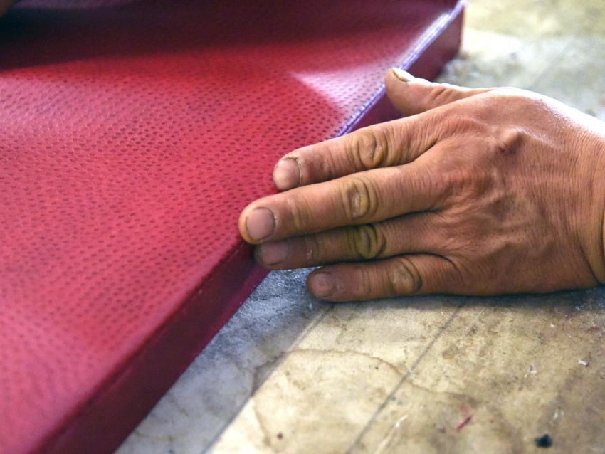When buying ready-made kits, you should pay special attention to the quality of dermantin. To do this, it must be removed from the package and the smell is assessed.If it is a harsh synthetic "aroma", manufacturing technology violations are possible. As a result, the material will be more susceptible to wear. High-quality leatherette has a subtle and rather pleasant smell.