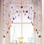 It is also recommended to use original hand-made products. These can be various figures fixed on threads, beautiful garlands, or even small containers with mini-plants. For this type of window design, you can also connect children's ideas, which are often original.