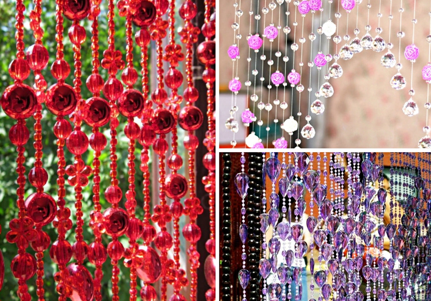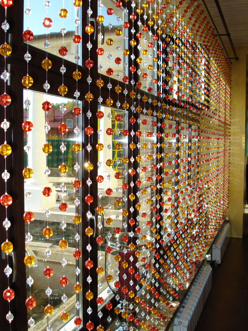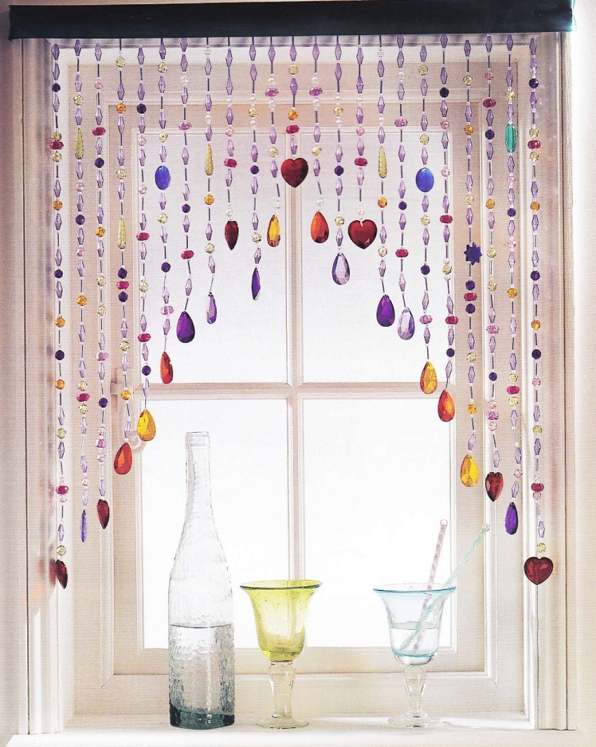 Often, looking at photos of decorated windows, you can see that instead of curtains, curtains made of beads are used. Despite the fact that usually this decor option is used to decorate interior openings, it looks beautiful on windows as well. The material from which the beads are made is selected based on the general interior of the room - it can be glass, plastic, wood, buttons or natural material: pebbles, shells. Such curtains will give the interior the right mood, as well as fill the kitchen with lightness and dynamics.