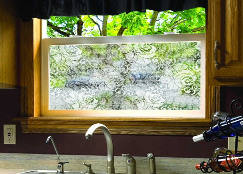 Each owner can use adhesive film or interior stickers to decorate the window design in the kitchen. In this case, not only an adult, but also a child will be able to realize their talent. Moreover, a large number of different options for stickers for glass surfaces are available in retail outlets.