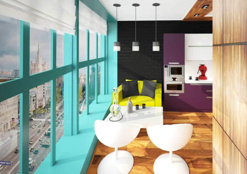 When it comes to decorating a window in a kitchen with a balcony, it is necessary that the curtains do not block the exit to the balcony. It is also necessary that the balcony door be in harmony with the design and color scheme of the curtains. The best option in this case is the use of products made of unpretentious and simple fabric, fixed on the cornice in a way that does not interfere with easily moving the product to the side. For this purpose, it is recommended to use curtains on eyelets, roman or roller blinds.