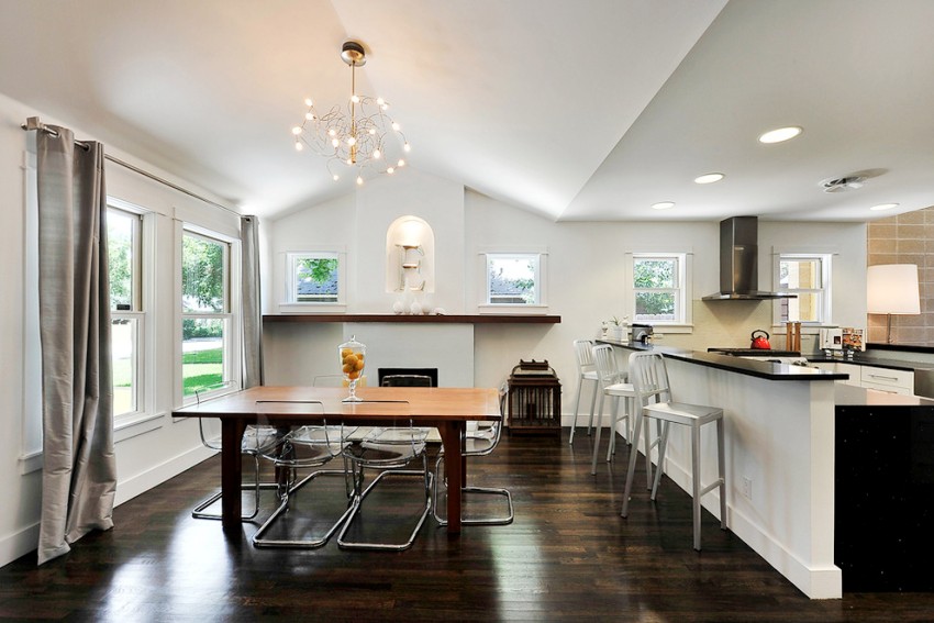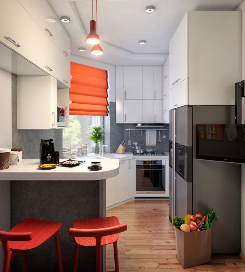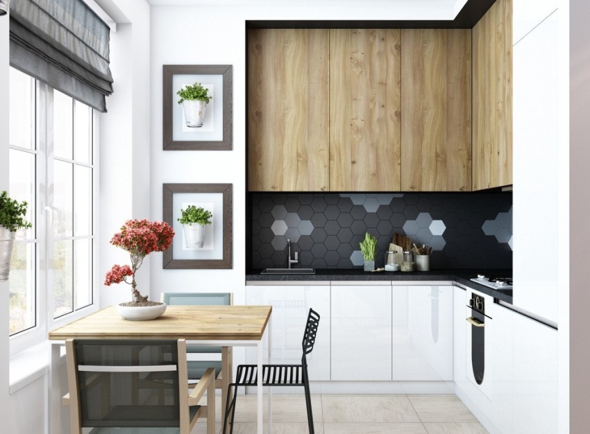 Correctly selected colors, ornament and material will help to emphasize the strengths of the kitchen interior